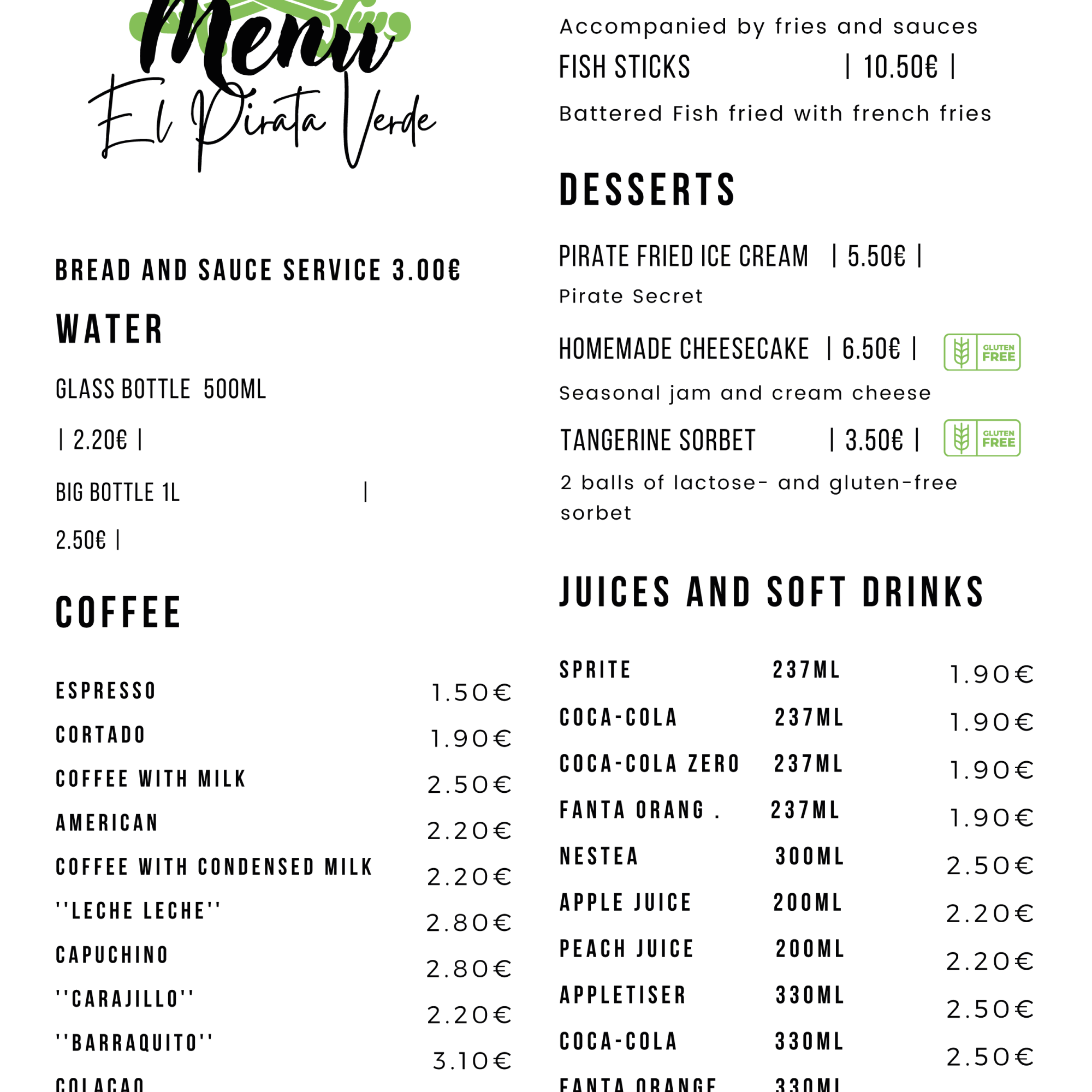 Drinks, Desserts and Children’s menu